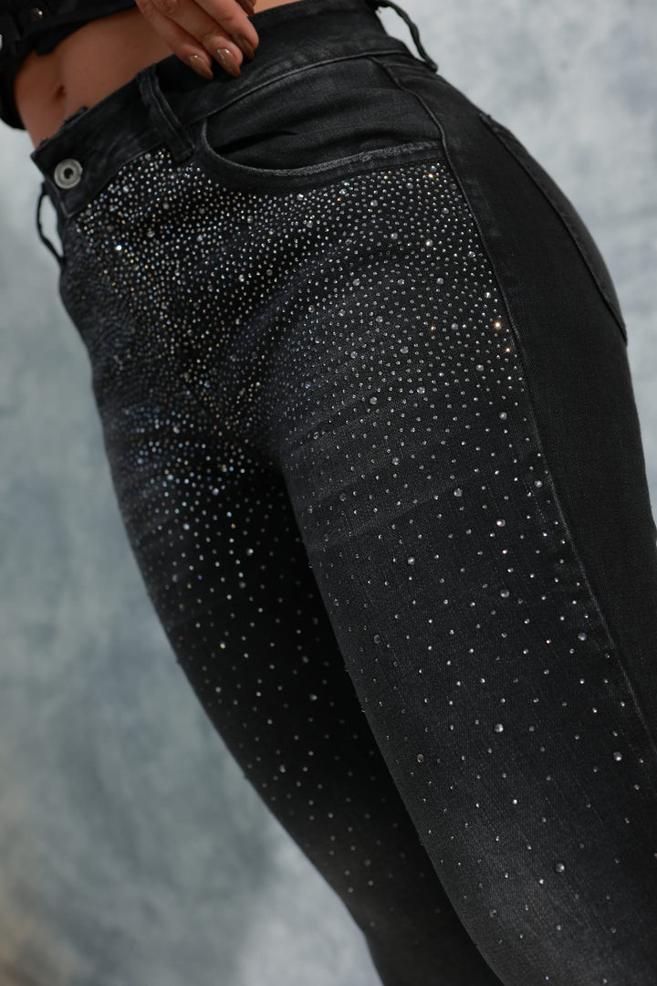 Ref: 24533-1M Jean bota campana gris, un botón, stretch, con cristales.
