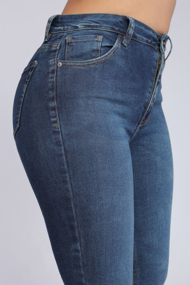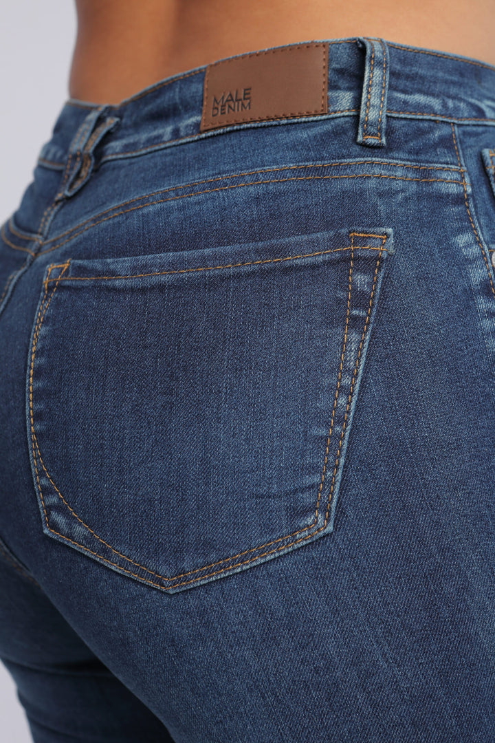 Ref: 15518-1 Jean skinny, tono oscuro, stretch, un botón, cintura ajustada, básico con desgaste.